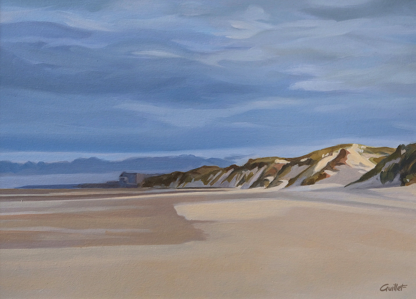 Dunes sur la plage de Merlimont - Côte d'Opale - Pas de Calais - Huile sur papier 290 g - 38x28 cm