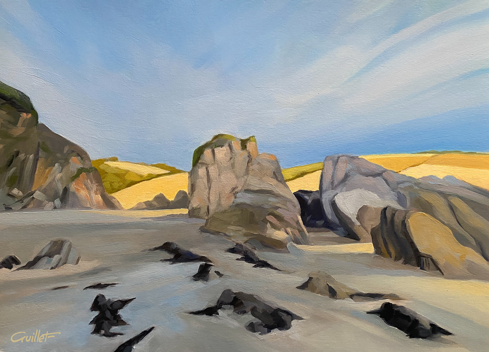 NEW Mothecombe Beach - Devon - Angleterre - Huile sur papier - 40x29 cm
