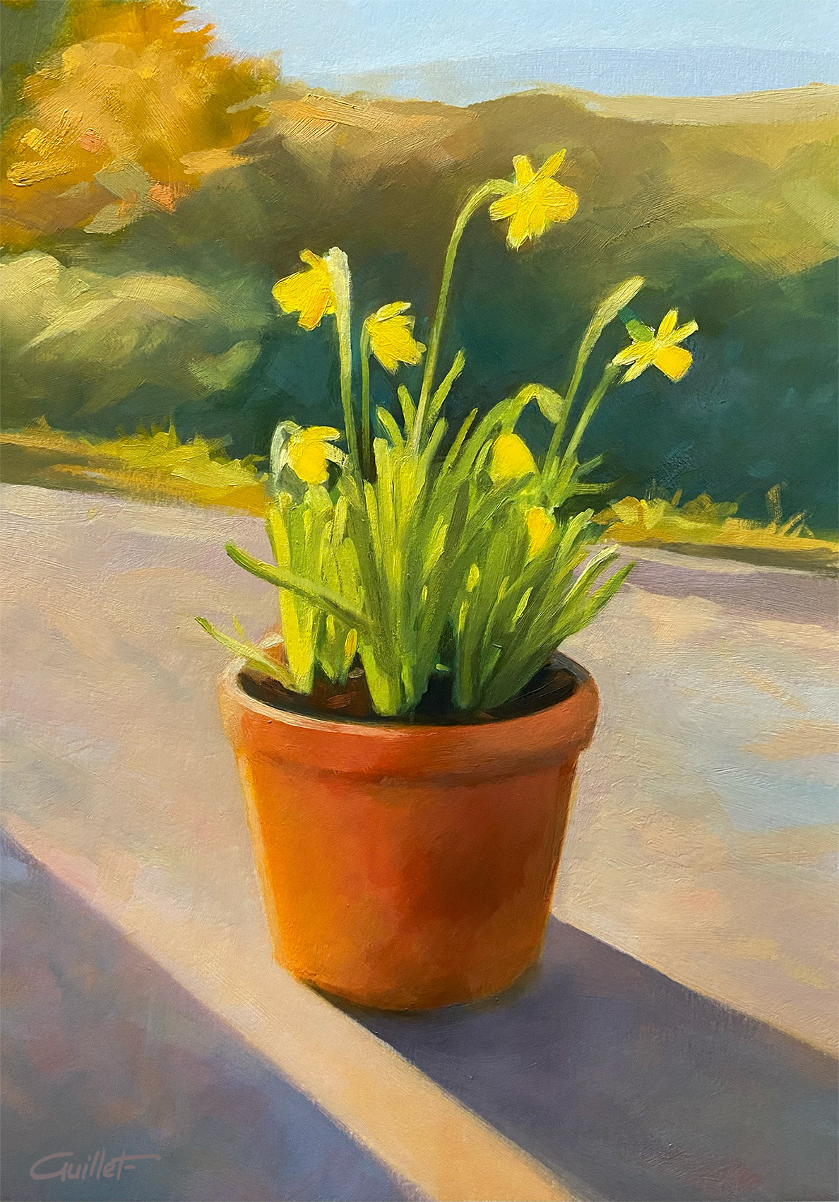 NEW Pot de jonquilles - Huile sur papier Canson 290 g - 28x39 cm